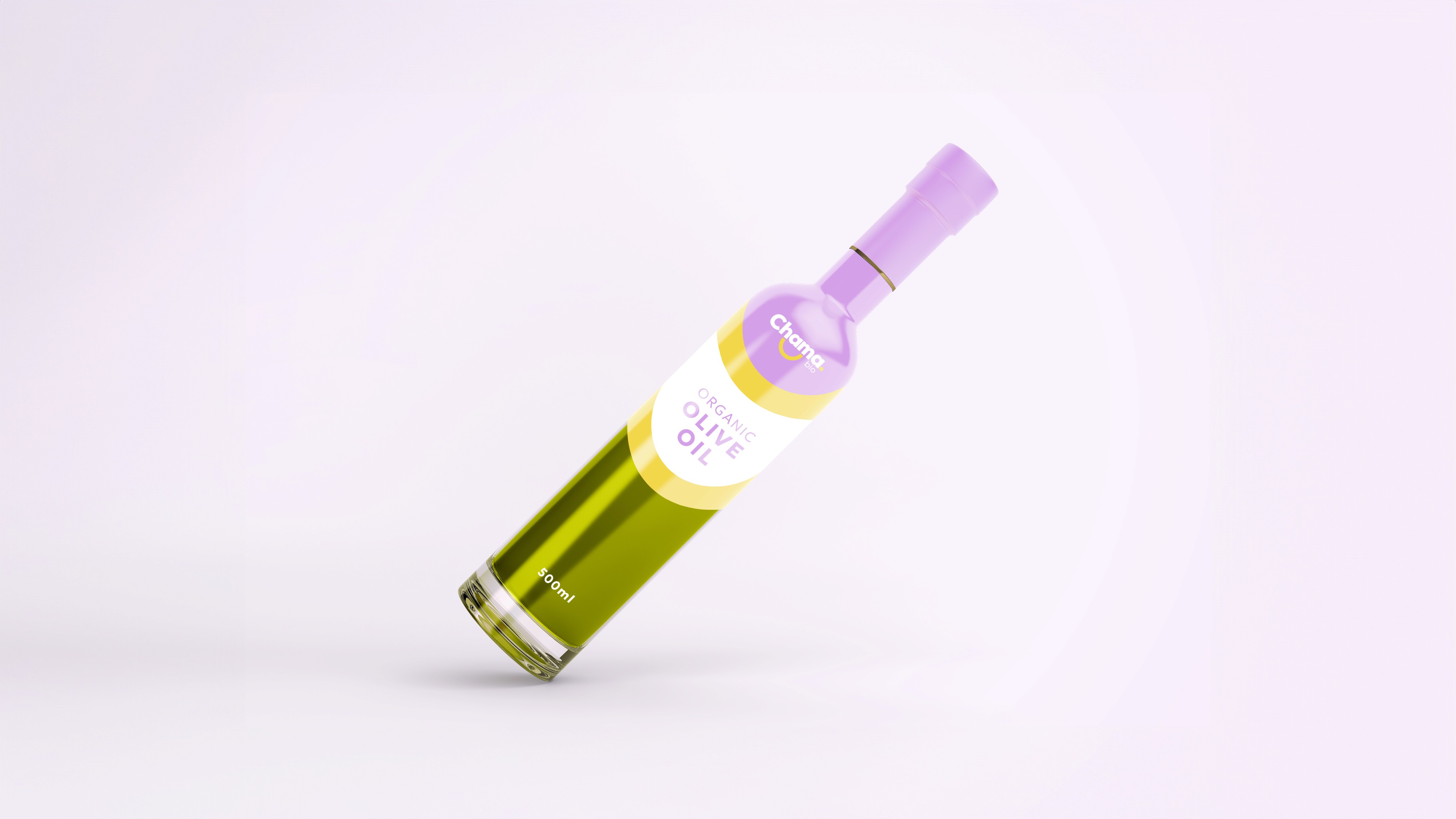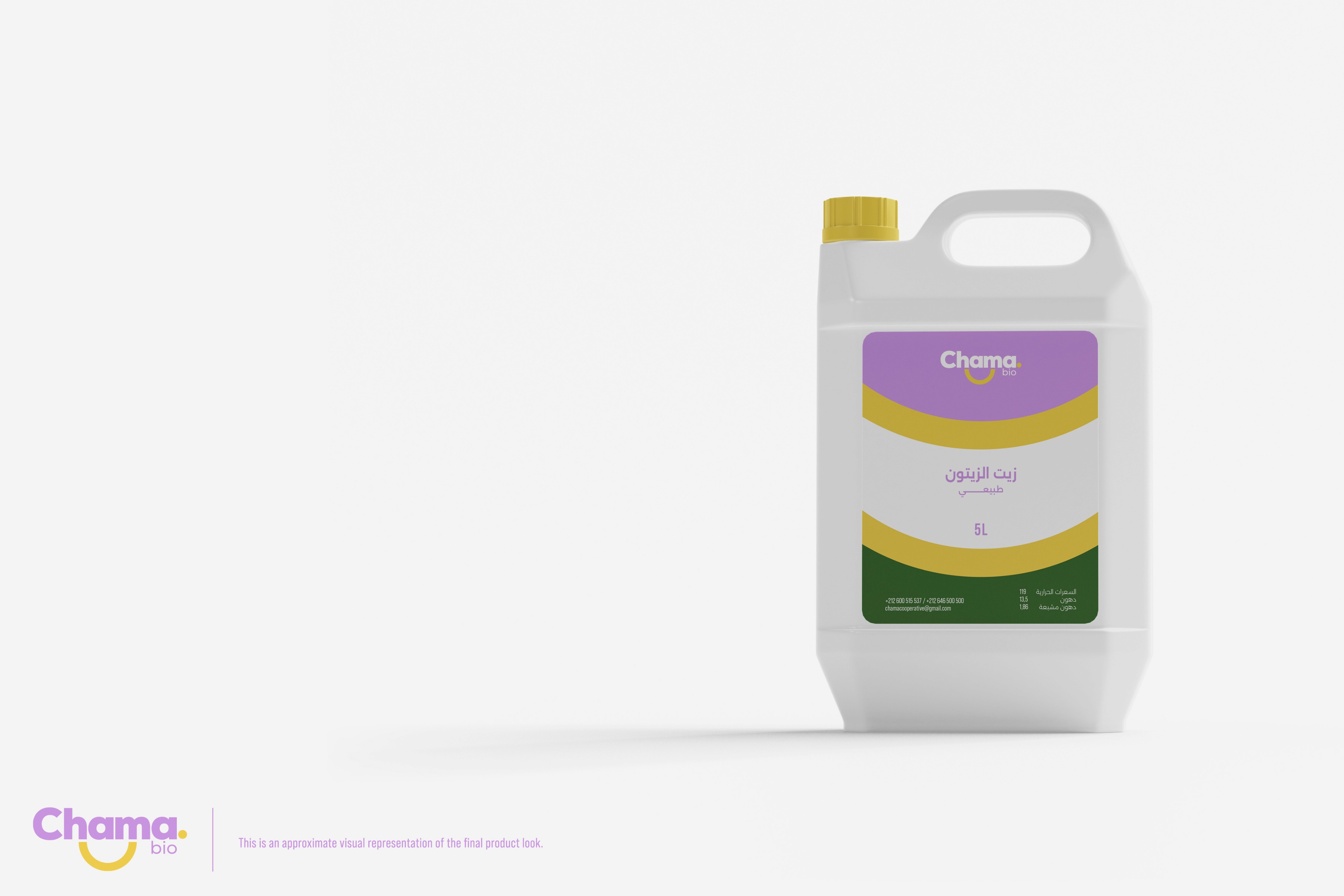 The light-violet hue signifies sophistication and quality, while the yellow evokes warmth and freshness in “Chama Bio” products.